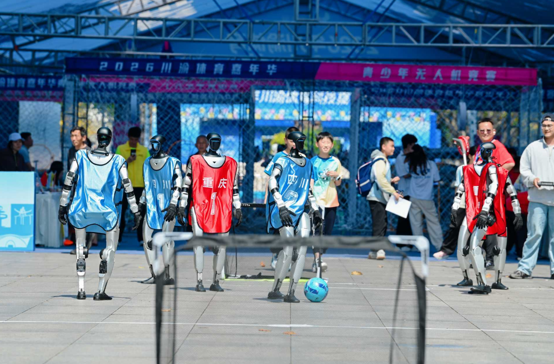 川渝机器人足球比赛于4月17日下午3点正式开赛,这是川渝两地首次机器人足球“德比”。本次参赛“选手”采用今年春晚同款功夫机器人,具备复杂的实时感知、大脑决策、高级运动控制能力,以及多智能体协作战术和灵巧轻便、耐受冲击的硬件本体。它们分别身着代表重庆、四川两地地域特色的队服,以实体足球展开真实对抗,还原足球竞技的热血与激情。比赛中简化了越位、手球等复杂规则,采取宽松的判罚尺度,允许合理冲撞,契合当前机器人动态避障技术特点,大幅提升了赛事的观赏性与趣味性。