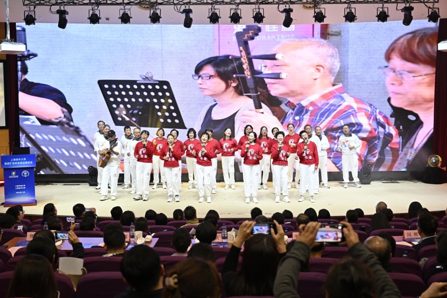 金山区老年大学的学员作学习成果展示,展现老年人的活力和魅力。