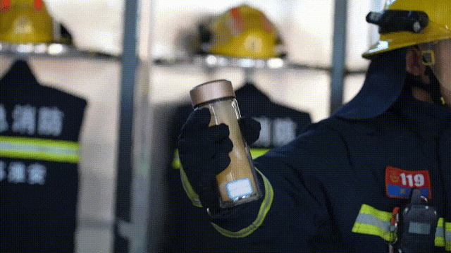 消防员使用双层玻璃保温杯。