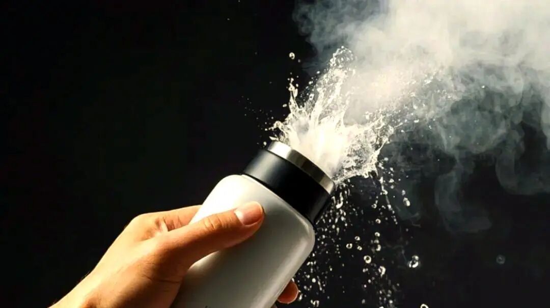 保温杯喷出热气。图源:淮安消防